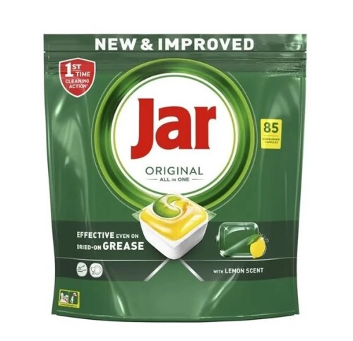 Kapsuly do umývačky riadu Jar Original čistia hneď na prvýkrát a sú účinné aj pri zaschnutej mastnote. Zabudovaná pomocná funkcia soli a leštidla vrátane ochrany skla a striebra. Zanechá vašu umývačku riadu so sviežou vôňou a čistú. Vysokorozpustná kapsula do umývačky riadu sa rýchlo rozpustí. Vôňa citrónu.