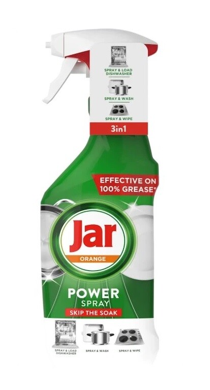 Viacúčelový sprej na kuchyňu a riad 3v1 Jar Power Spray s vôňou pomaranča je váš spoľahlivý pomocník v boji proti mastnote. Tento účinný čistič zvládne 100 % mastnoty bez potreby namáčania. Vďaka svojmu 3v1 zloženiu môžete sprejovať, umývať a utierať s ľahkosťou. Vhodný na riad, povrchy a spotrebiče, zabezpečí dokonalú čistotu v celej kuchyni. S osviežujúcou vôňou pomaranča bude čistenie radosťou. Jednoduché čistenie a žiarivý lesk pre váš riad a kuchyňu so sprejom 3v1 Jar Power Orange.