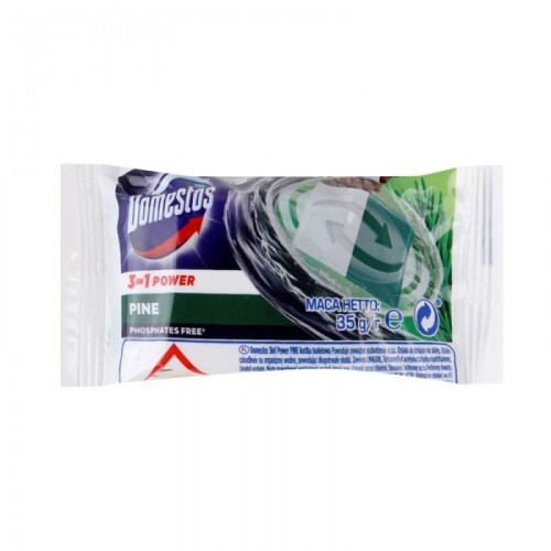 Domestos 3v1 tuhý WC blok má špeciálne vrstvenie a kombinuje tak tri účinky. Likviduje prostredie na množenie baktérií. Bráni tvorbe vodného kameňa. Vďaka obsahu parfumov zanecháva dlhotrvajúcu sviežu vôňu po každom spláchnutí. Domestos tuhé bloky prinášajú intenzívnu vôňu, výraznejšie spenenie a kompletnú hygienickú čistotu po každom spláchnutí. Svieža vôňa borovice.