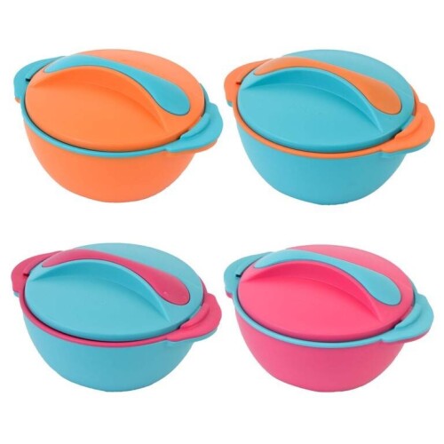 Menšia plastová termomisa PICASSO s vekom a s nerezovou vložkou, pracuje na princípe termosky, tzn. že najlepšie plní funkciu plná, a to po dobu cca 4-6 hodín (pokiaľ neodkryjete pokrievku), vďaka hrubej vrstve izolácie.