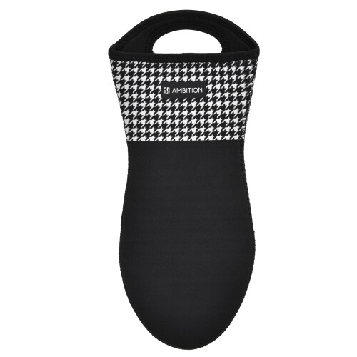Kuchynská rukavica Coco od Ambition, v čiernom prevedení s pepitovým vzorom, je moderným a funkčným doplnkom do každej kuchyne. Je vyrobená z vysoko kvalitného neoprénu, účinne chráni vaše ruky pred horúcim riadom. Ergonomický tvar sa prispôsobí vašej ruke a protišmykový povrch zaisťuje bezpečné uchopenie. Čiernobiely vzor pepito jej dodáva moderný nádych, vďaka čomu je funkčná aj módna zároveň.