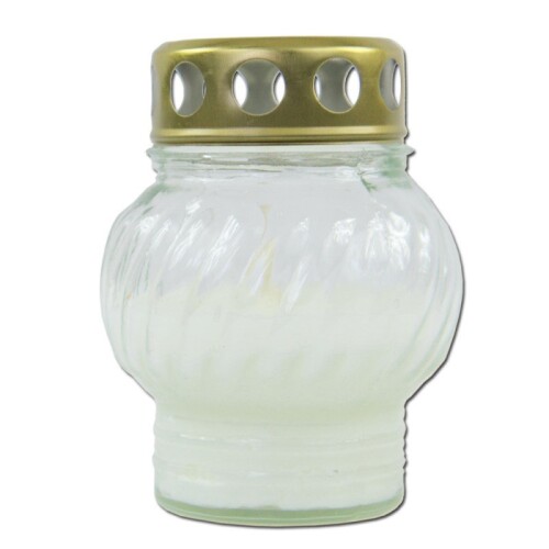 Klasický sklenený kahanec s bielym parafínom.