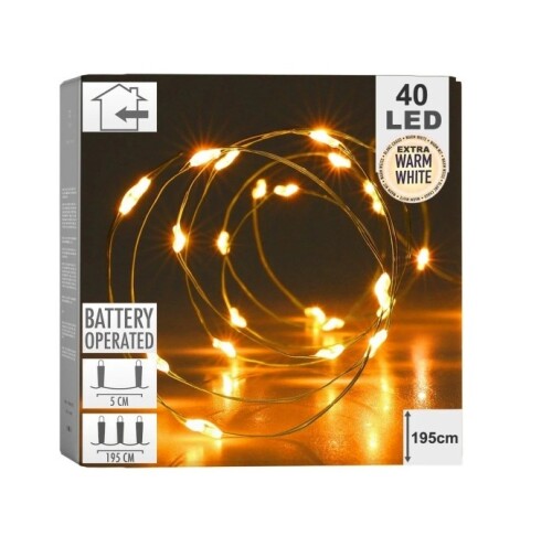 Vianočné osvetlenie na zlatom drôtiku. Napájané batériami, určené na použitie v interiéri. Majú veľmi príjemný teplý odtieň bielej, ktorý osvetlí nami pripravené dekorácie alebo bude dekoráciou sama o sebe. S ich pomocou vytvoríte jedinečnú vianočnú atmosféru.
