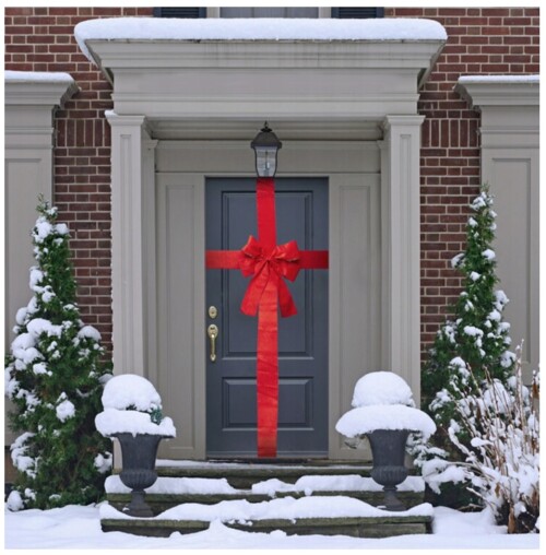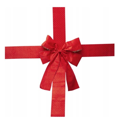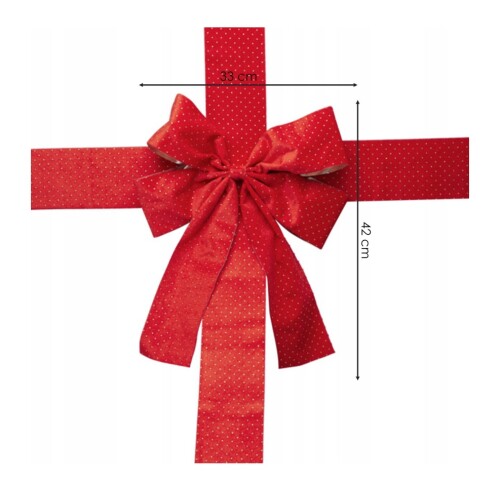 Dekoratívna mašľa na dvere v červenej farbe je rýchly spôsob, ako vytvoriť vianočnú atmosféru pred domom. Vďaka širokej páske so suchým zipsom je ľahké ju upevniť a lesklý materiál krásne ladí so zimným aranžmánom. Upevnenie pásky je na suchý zips.