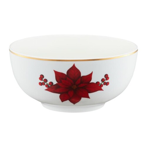 Miska Nela s vianočnou hviezdou je vyrobená z vysoko kvalitného, trvanlivého a odolného porcelánu. Biela farba s jemným leskom krásne kontrastuje s červenou farbou vianočnej hviezdy – symbolu Vianoc. Zlatý prúžok na okraji dodáva miske jedinečný nádych a robí z nej nielen praktický kus riadu, ale aj dekoratívny doplnok vášho sviatočného stola. Na zachovanie kvality zlatých zdobení sa odporúča ručné umývanie. Miska nie je vhodná do mikrovlnej rúry.