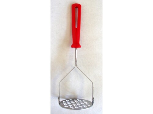 Kovový lis na zemiaky s plastovou rúčkou, vhodný aj do umývačky riadu.