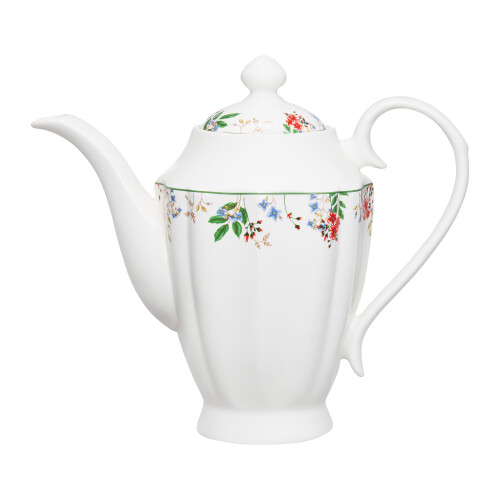 Džbánok s viečkom na kávu a čaj Rosalia je elegantným doplnkom akéhokoľvek stolného riadu a poteší svojou decentnou kvetinovou výzdobou. Je vyrobený z vysoko kvalitného porcelánu a priťahuje pozornosť svojim romantickým dekorom - červené vlčie maky, modré kvety a zelené listy vytvárajú harmonickú botanickú kompozíciu. Vďaka svojmu všestrannému štýlu je džbánok Rosalia skvelým produktom ako na každodenné použitie, tak na zvláštne príležitosti. Použitie v umývačke riadu navyše zvyšuje pohodlie pri používaní.