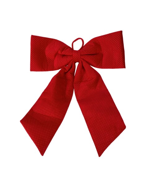 Elegantná mašľa vyrobená z vysoko kvalitnej zamatovej tkaniny v červenej farbe, zdobená zlatými bodkami. Ideálne pre vianočné dekorácie, darčeky alebo interiérový design. Elegantné zlaté detaily zdôrazňujú jedinečný charakter. Dodajte svojim dekoráciám šmrnc a eleganciu vďaka tejto zamatovej mašličke s bodkami.