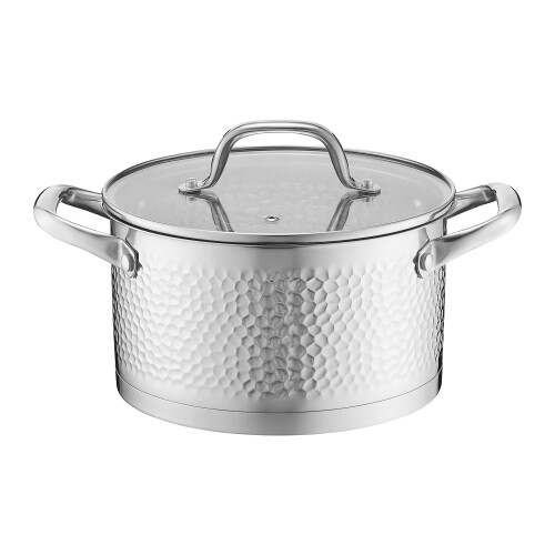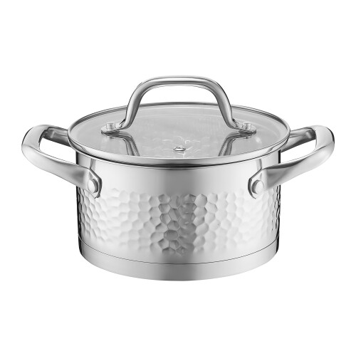 Sada 3 hrncov s pokrievkami Bubble kombinuje moderný dizajn s praktickosťou každodenného varenia. Hrnce sú vyrobené z vysoko kvalitnej nerezovej ocele a ich elegantný tepaný povrch im dodáva jedinečný charakter. Jednoduchý tvar a nadčasový vzhľad z nich robí perfektnú voľbu do každej kuchyne – klasickej aj modernej. Každý hrniec je vybavený sklenenou pokrievkou, ktorá vám umožňuje sledovať proces varenia bez toho, aby ste ju museli dávať dole. Vstavaná stupnica objemu na vnútornej stene uľahčuje odmeranie správneho množstva tekutín. Hrnce sú vhodné pre všetky typy sporákov, vrátane indukcie, a dajú sa umývať v umývačke riadu.