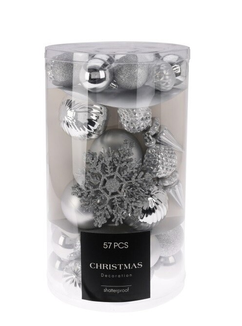 Súprava vianočných gúľ 57ks SILVER