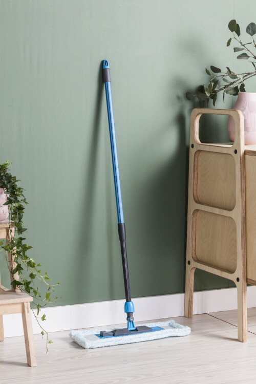 Univerzálny plochý mop vhodný na čistenie všetkých typov podláh: drevených, laminátových, terakotových, linoleových a dlaždíc. Hlava mopu je vyrobená z vysoko savého, hrubého mikrovlákna, ktoré umožňuje upratať až 40 m² na jeden ťah. Materiál umožňuje čistenie bez použitia čistiacich prostriedkov, mokré aj suché. Uľahčuje čistenie ťažko dostupných miest. Teleskopická rukoväť umožňuje nastavenie dĺžky podľa výšky používateľa.