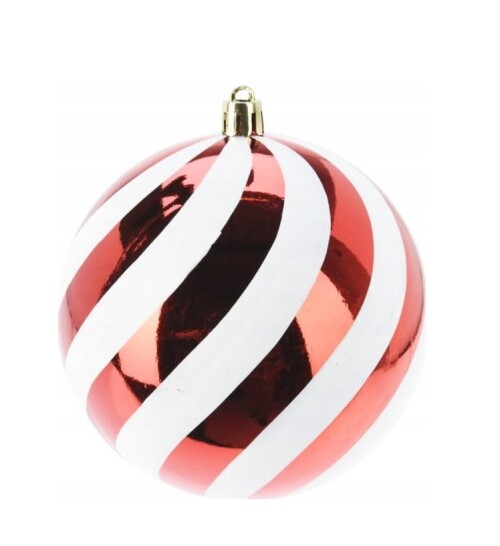 Vianočná guľa červená s bielymi pásikmi 14cm RED