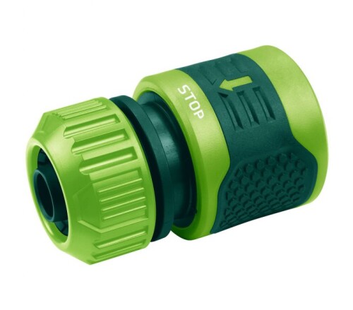 1/2 "- 5/8" armatúra VERTO STOP (ref. 15G731). Na výrobu rýchlospojky bol použitý kvalitný plast, takže tento prvok bude bezproblémovo slúžiť dlhú dobu. Rukoväť z protišmykovej gumy zaručuje pohodlnú manipuláciu.